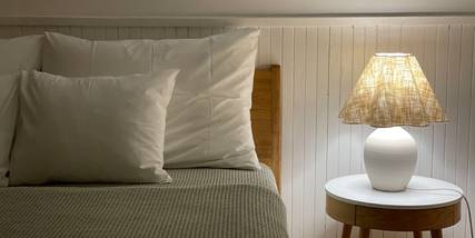 Die Schlafzimmer sind minimalistisch, wie moderne Klosterzellen. In jedem Schlafzimmer findet Ihr ein Doppelbett, Stauraum für Kleidung, einen Schreibtisch, einen Stuhl, Nachttische und Lampen. In den Schlafzimmern im Obergeschoss gibt es auch Zusatzbetten.