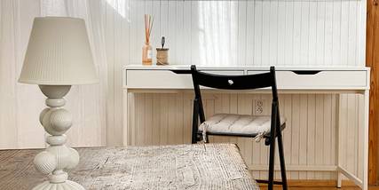 In den oberen Zimmern befinden sich Schreibtische. Das Zimmer mit dem Himmelbett hat einen ausklappbaren Schreibtisch. Auch in den unteren Zimmern lässt es sich bequem arbeiten. Es gibt 6 Stühle für längeres Sitzen im Haus.